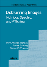 Deblurring ImagesMatrices, Spectra, and FilteringPer Christian Hansen, James G. Nagy, and Dianne P. O'LearyFundamentals of Algorithms 3, SIAM, Philadelphia, 2006 This site contains material related to the above book. In addition to the images and software used in the book, we provide additional material that can be used, e.g., for teaching a course based on the book. |